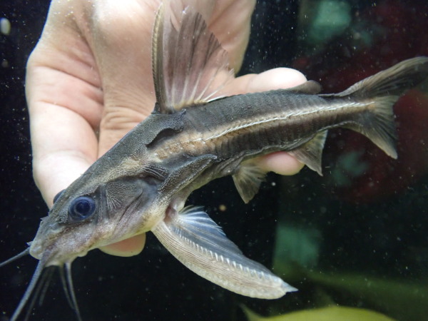 イエローキャットのインボイスで入荷しましたが、たぶんAuchenipterichthys longimanus と思われるナマズ。アマゾン河下流から中流域はネグロ水系のあたりまで分布している珍しいレモラキャットの仲間。普通のレモラより全然大きくなる種類で、今回来たのも余裕で20cm超えてます!値段まぁまぁしますがこんなレモラキャットのお化けみたいなやつは滅多に来ません!マニアの方お見逃しなく!!左下の画像です。
