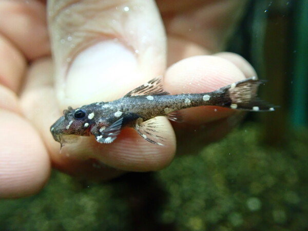 小さいアグア来ました。小さいうちは特に白い水玉模様がかわいいです。成長の遅い種類が多いプレコの中でもアグアは成長早い方で、特に小さいうちはすくすく育ちます。あと小さいうちは意外とコケもよく食べてくれるのでコケ掃除にも役に立ちますよ!小さいうちはかわいいですが成長するとトゲトゲした厳つくて超かっこいいプレコに成長しますよ。右上の画像です。
