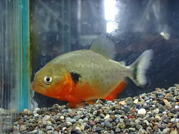 前に小さいベビーが入荷しましたが今回はちょっと大きめのが来ました。真っ赤に発色したすごくキレイな個体です。1匹で大事に育てるのも良いし、ナッテリィやピラヤなどピゴケントルスの仲間との混泳にチャレンジするのも良いですね!中段左の画像です。