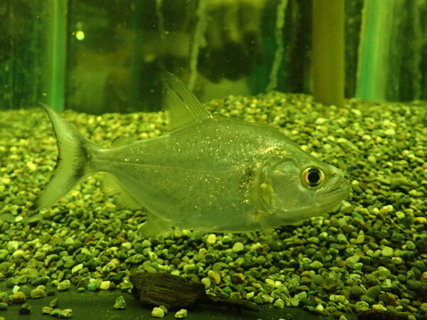 小さいうちは銀色ビカビカなシングー産ブラックピラニアです。成長につれてだんだん体色が濃くなり紫っぽい光沢が出てきます。あと体側に黒いぶち模様が出る個体もいますね。シングー産ブラックは他の産地のブラックよりも小さいうちから明らかに目が真っ赤なのも特徴ですね。たまにしか来ませんのでお探しだった方はお見逃しなく!左上の画像です。
