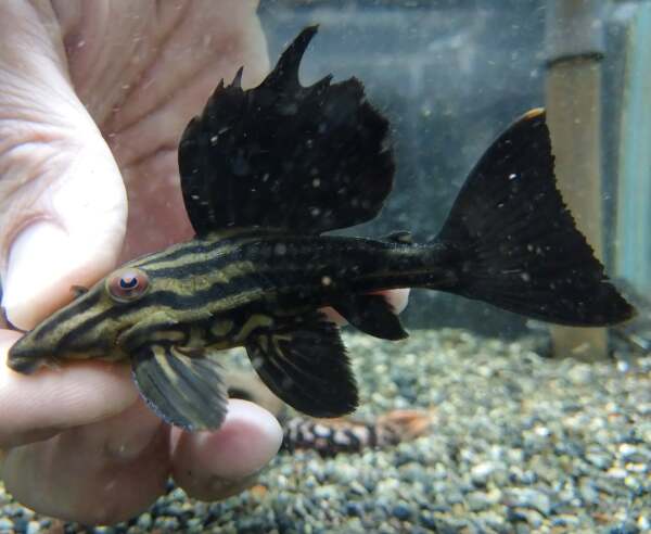超激レア!オレンジロイヤルのロングフィン個体です!ロイヤルプレコの仲間は稀にロングフィン個体が確認されていますが、狙って仕入れられる魚ではありませんのでマニアの方は必見です!もちろん1匹のみです!左下の画像です。