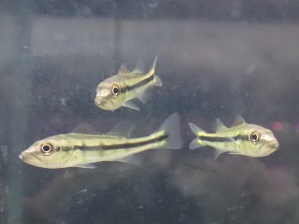 純淡水でも飼育できるらしいのです。南米淡水カレイは純淡水で問題無いですが、淡水ヒラメは個人的には少し塩入れた方良い気がしてます。なので店頭では少し塩入れてありますが、長く売れ残るようなら少しずつ塩分下げて純淡水にしてみようかな??カレイと違って超アグレッシブに餌の小魚を追い回して捕食するので見てて楽しいですよ!