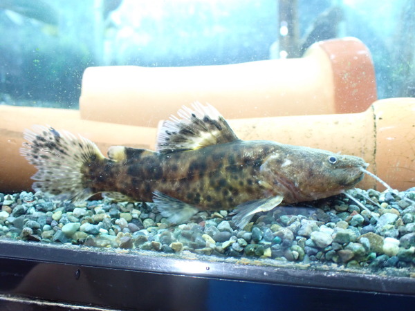 超激レア!当店初入荷の南米産カワアナゴです!Eleotris pisonis という種類です。太平洋沿岸に分布するスポッテッドスリーパー Eleotris picta はエクアドルからたまに来ますが、大西洋側のピソニスは超激レアで初めて見ました!スパイニーチークの名前はありますが、ぱっと見で確認できるような棘が発達するわけではないそうな・・・。どうやら成長するとエラ蓋の一部に細かい棘が出てきてザラザラチクチクする程度っぽい。でもカワアナゴとしてはかなり面白い特徴ですね!我こそはと言う方はそんなザラザラが確認できるくらいまで育ててみてください!入荷は1匹にみです!