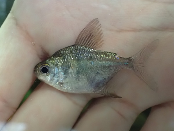 ちょっとだけ発光バクテリアが付いたブラックテトラみたいな丸い体型のカラシンです。7~8cm位にはなるみたいですが、体高あるからそのサイズでも結構存在感出そうです!入荷は少数です!右上の画像です。