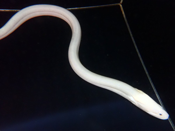 超レア!真っ白シミ無しのプラチナタウナギが入荷しました!アルビノや黄変個体、3色のキャリコなどの色変わりは過去に入荷したことがありますが、真っ白のプラチナは初めてです!超キレイで超神々しいです!こいつはタウナギの神様かもしれません!?もちろん入荷は1匹のみです!マニア必見!!上段、中段左の画像です。3つの画像は同一個体です。