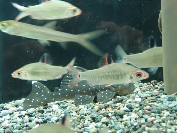 アフリカ産の繊細な美しさが魅力的なコイ科の魚。ライアマスクリスティの名前で流通することも。バリリウスのようなちょっと渓流魚チックな色彩がとてもキレイですね。中段左の画像です。