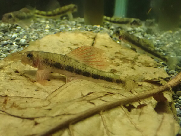 中国産の珍しいコブクロカマツカの仲間。ぱっと見そんな派手には見えませんが、これが大化けするんです!オスの婚姻色がごいんです!ヒレが真っ赤に染まり体は紫になります!メスは地味っぽいですが、動きの面白い魚なのでぜひペアでどうぞ!メスがいた方がオスの婚姻色もキレイに発色すると思いますしね!一昨年くらいからポツポツと輸入されるようになったみたいですが、それでもほとんど流通はしていなかったと思います。当店への入荷も今回が初めてです!Microphysogobio tafangensis の学名で画像検索してみてください!激ヤバなオスの画像が見られますよ!左上の画像です。