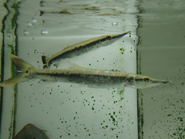 ビクーダ入荷!うちのお客さんで大きい水槽でビクーダでかくしてるマニアの方がいるのですが、その方曰く、ビクーダはカジキのように長い吻で小魚を突き刺すようにして狩りをするそうです!?そうやって魚を襲っている所を何度も目撃してるから間違いないと仰ってました!カジキのように狩りをするビクーダなんて実際に観察してみたいですね!!そして大きくなる魚だけあって他のハイドロシナスガーの仲間に比べても餌を捕まえるのが格段に上手だそうです!ぜひ大きく育てあげてカジキのような狩りを観察して下さい!!右上の画像の下の個体です。