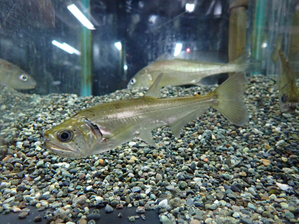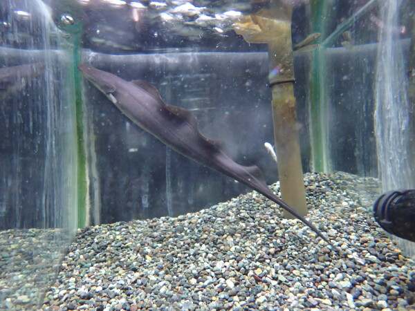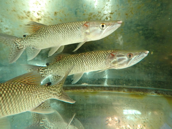 ミニチュアアロワナみたいなアフリカの古代魚。顔付、体型はアロワナそっくりですね。大きなヒレを使ってよく飛び跳ねるので蓋はしっかり!左下の画像です。