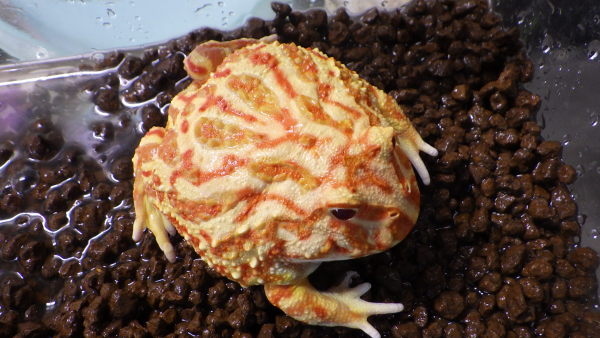 アルビノクランウェルツノガエル ”アプリコット” 左の画像