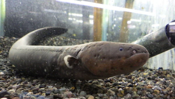 ナイスサイズのデンキウナギが入荷!大好きな魚なので在庫がないと淋しい、でもいても人気ないからあんまり売れない・・・。売れなくても店で育てるからいいんです!中段右の画像です。