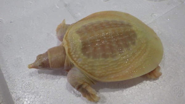 大きめな安心サイズのアルビノスッポンです!ベビーだと皮膚病になりやすかったり低温に弱かったり、ややデリケートな部分もありますが、このサイズなら丈夫で飼いやすいですよ!左下の画像です。