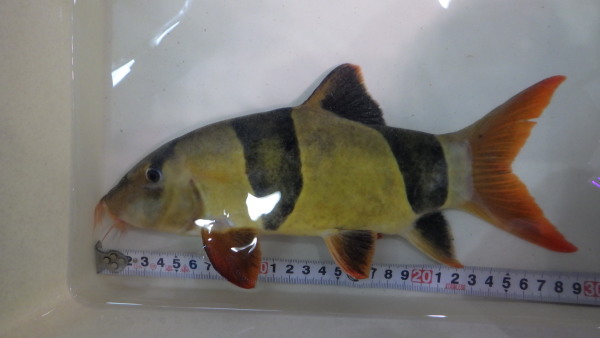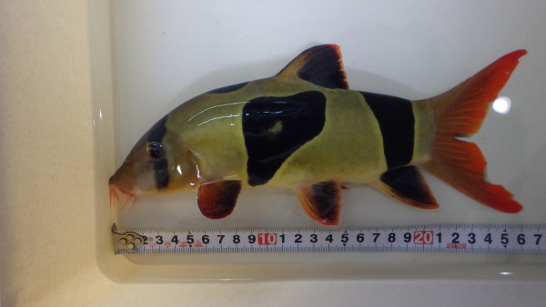これも久しぶりの入荷です!今回はサイズ大きめでもう既にカッコいい!高麗オヤニラミのように高温が苦手な感じもなく普通に32度とかでも全然大丈夫なので飼いやすいです!以前、店頭で20cm位までは育てたことがありますが、最大では25cm位になるようです。これをマックスサイズまで育ったらかなりカッコいいですよ!ホームページにアップする前に1匹売れてしまったので残りはあと少し!お早めに!!右下の画像です。