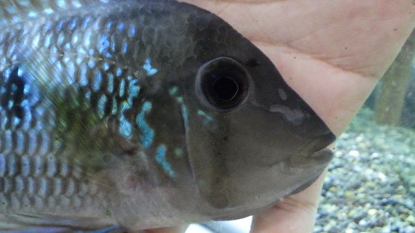 パールシクリッドとも呼ばれる体側のメタリックブルーのスポットがキレイなシクリッド。サイズ大きめなワイルド個体ですが、少し穴あきがあるので超特価!このサイズのワイルド個体がこの値段は超お買い得です!穴あきもそんなにひどいわけではありませんので気にならない方はぜひ!!右上、中段左の画像です。2つの画像は同一個体です。