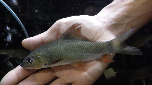 ドルフィンカープ入荷しました!サイズもちょうどいい!!このサイズではまだ頭のコブが出ていませんがこれからです!この魚、意外と良くコケを食べてくれるんです。セルフィンプレコほどの仕事を期待されるとがっかりさせてしまうかもしれませんが、それなりには掃除してくれますよ!ぜひ頭の張り出したビッグサイズに育ててください!!大きくなった姿を知らない方は Bangana beheri の学名で画像検索してみてください!大きいの見たら絶対欲しくなっちゃいますよ!入荷は1匹のみです!右下の画像です。