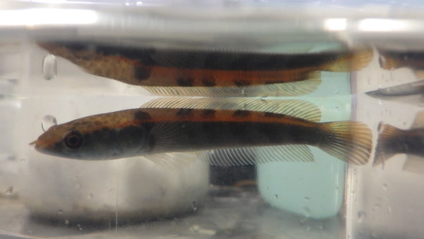 有難いことに前回入荷分もすぐに売り切れ。何匹かはお店で成長を見ながらゆっくり売りたいなぁと思っていたのでありがたい再入荷です!!今回入荷分も蛍光オレンジのラインがキレイに出ているので将来が楽しみですね!入荷は少数で問屋さんにももうほとんどいないみたいだからこの後はしばらく来ないっぽいです。メラノプテルスみたいなタイプでバンドは太く、11~12cmになるころには背中のラインも腹部のブルーも薄くなり全体的に赤茶色っぽい感じになります。気になってる方、少しだったらいますのでまだ間に合いますよ!?右上の画像です。