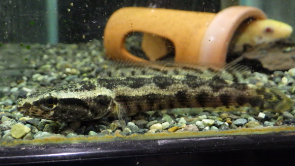 久しぶりにナミダカワウツボ見ました。淡水ウツボなんていうざっくりした名前で売られてることもありますが、今は10分の1位の海水濃度の汽水でストック中です。ウツボの仲間は丈夫な種類が多いし淡水への順応性も高いので海水から一時的には淡水での飼育も可能ですが、長期飼育を考えるとどうしても塩分は必要になります。無理に淡水に慣らしての飼育はオススメしません。塩分濃度の管理はかなり適当でも大丈夫ですので飼育水には少し塩を入れてあげましょう。