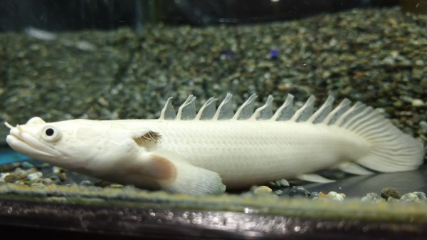 最近話題のインドネシアンな謎のスネークヘッド。遅ればせながら当店にも入荷しました。実物を初めて見ましたがかなり変わった印象を受けた魚。雑誌やネット上の画像を見た感じではマルリオイデスよりもマルリウスに近い種類なのかなと思っていましたが、実物見たらマルリオイデスとマルリウスのちょうど中間みたいな雰囲気。色はグリーンというよりも青っぽい感じで、ヒレや体側のラメ状の細かいスポットがこれからどう変化していくのか楽しみです!流通量の少ない希少なスネークヘッドです!初入荷の時に比べて価格もだいぶ下がりましたのでマニアの方はこの機会をお見逃しなく!!左上の画像です。