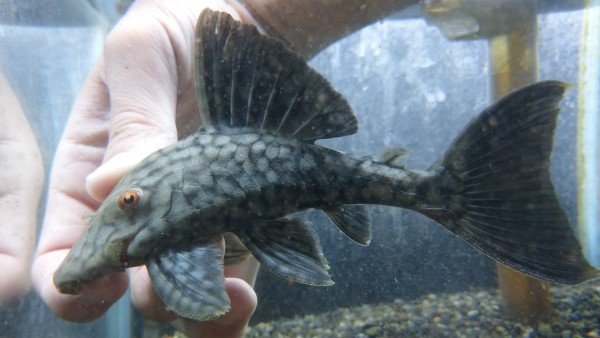 変わった模様のロイヤルもいます。スポットでもラインでもない唐草模様のような不思議な模様のロイヤルプレコ。これも1匹のみです!!右下の画像です。