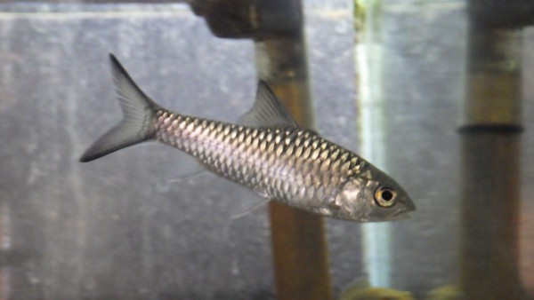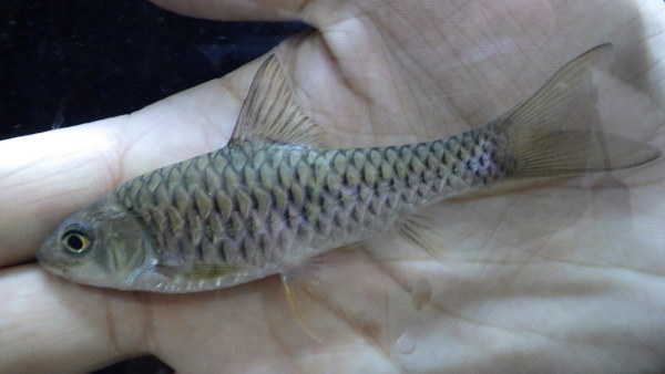 最初に言っておきますが、別に青くないです・・・。なのに何故かブルーマハシール・・・。まぁ何となくですが、鱗の光沢は青灰色っぽい感じがしないこともないかな、っていう位です。でもインド産のトールにしてはちょっと変わった感じがします。シルエットはアロワナカープみたいで、インドからこういう体型のコイはあんまり来た記憶がないです。右上の画像です。