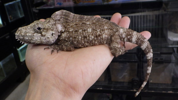 こっちは動きもスローで取り扱いも楽です。手触りももっちりとした感じでついハンドリングしたくなるトカゲ。カメレオンモドキはカメレオンではないので舌は伸びませんが、左右同時に別々の場所を見られる目や顔つきはまるでカメレオン!飼育も難しくありません!下段の画像です。