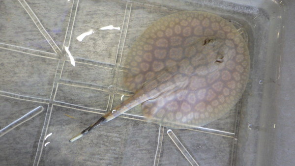 フラワータイガー久ぶりの入荷です!痩せた個体が輸入されることが多いので飼育難易度高めの種類ですが、今回入荷した個体は問屋さんでしばらくストックされていたため状態がすごく良いです!尾の先が少し切れてちょっと短くなってしまっていますが、ワイルドのエイの尾切れはまぁまぁよくあることですし、状態が良ければ尾切れくらい気にしないよという方はぜひどうぞ!尾切れの分かなりお買い得になっています!入荷したばかりですがもう餌のメダカしっかり食べてますよ!!左上の画像です。