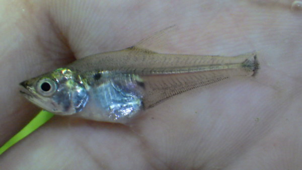 超激レアなヘミオダスの親戚な中型カラシンです。前に16~17cm位の大きいのが入荷したことがありましたが3万円近くしましたから、今回のはかなりお買い得!!大きくなると透明のヘルメットをかぶったような不思議な魚になります!これかなりミステリアスでデメニギスみたいで個人的には大好きです!入荷少数につき早い者勝ちです!左下の画像です。