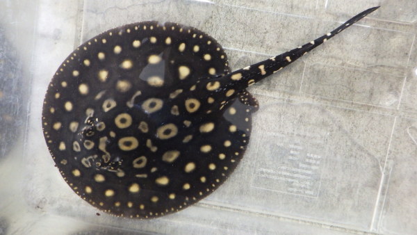 黒地にスポット模様のダイヤ系ハイブリッドスティングレーです。ハイブリとは言えパッと見はほぼダイヤです。値段の割には全然キレイでクオリティ高くてお買い得です!ブリード個体なので状態も良好!右下の画像(メス個体)です。