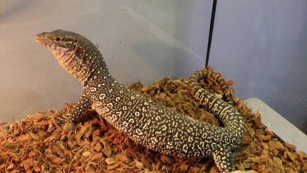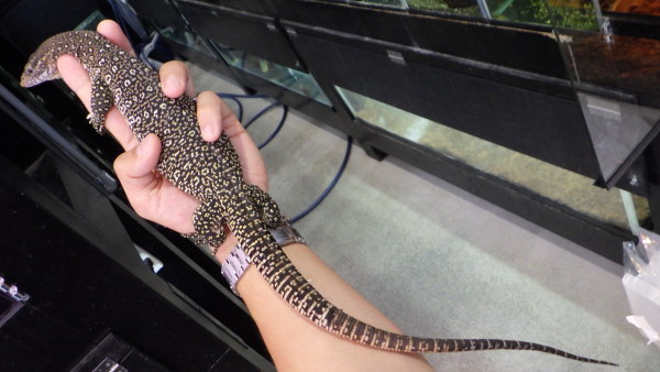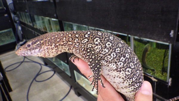 尾切れ、爪とびのない完品です!頭胴超25cm位で全長は55~60cm位のアダルトサイズです。餌食いも良好で、ピンセットからピンクマウスや1口サイズにカットしたヒヨコをバクバク食べてます!キレイだし大きくならないので飼いやすいですよ!大きな水槽は置けないけどオオトカゲが飼いたいという方にオススメの種類です!小さくてもオオトカゲの魅力を味わえますよ!中段右、下段の画像です。3つの画像は同一個体です。