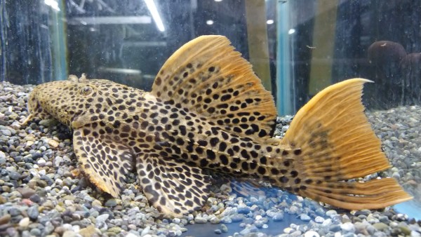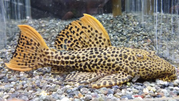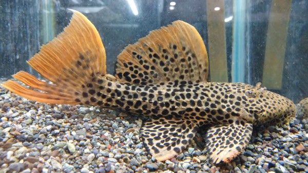 オレンジフィンゴールデンレオパードトリムプレコ ”ソリッドテール” ネグロ 22cm 特価¥49800