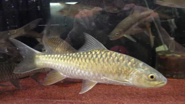 タイ便で入荷した黄金のマハシール。まっキンキンで超キレイです!実物見たらあまりにキレイだったから追加で注文しようと思って問屋さんに連絡したら、輸入された数が少なかったそうですでに売り切れでした、残念・・・。なのでこのサイズの個体、当店で販売できるのはこの1匹のみです!コイのマニアの方はお見逃しなく!!左上の画像です。