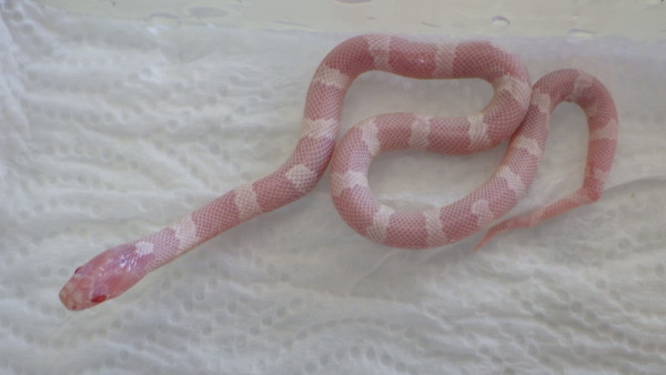 カリフォルニアキングスネーク アルビノデザートバンデッド ちょい尾曲りの為特価 左下の画像