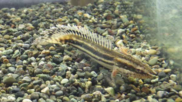 淡水のオコゼ。丸っこくてカワイイですが背ビレの棘に毒があります。小さくても刺されたらかなり痛いらしいので取扱には注意が必要です!お酒飲んだ後に水槽のメンテナンスとかはダメですよ!