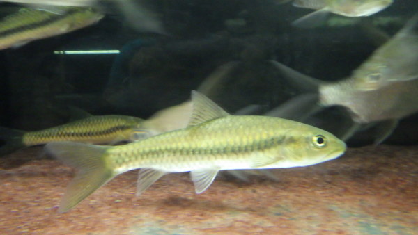 中国からベトナムに生息する金色のマハシール、Neolissochilus benasi です。まだ小さいですが既にめちゃくちゃキレイです!夏休みセールにつき大特価!入荷は少数です!左上の画像です。