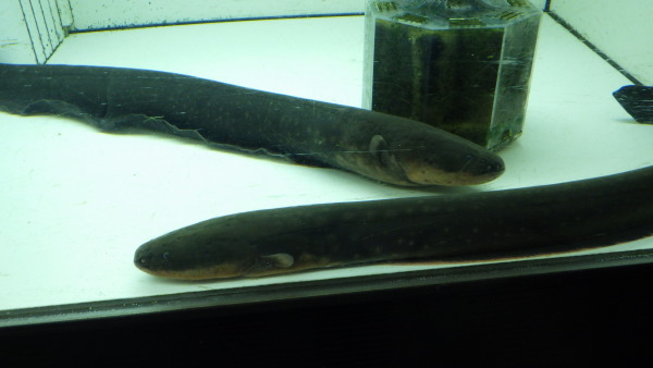 大きめサイズ入荷です!デンキウナギのベビーは意外とデリケートで飼育難易度は結構高めです。でも大きくなると丈夫で、感電しないように取扱に気を付けてもらえれば、飼育自体は容易です!それに大きいと存在感あっていいですよね!120×60の水槽でも1m超えますし、太さもクリルの缶位になりますよ!育てて楽しい魚です!2匹入荷しております。このサイズでこの値段はかなりお買い得ですし、こういう大きめはなかなか入荷しませんので、気になる方はお早めに!!上段の画像です。