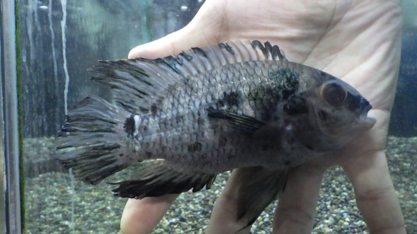 少し前に入荷した個体ですが、ちょっとトリートメントをしてたので入荷情報にアップするのが遅くなりましたが、今は状態ばっちりで絶好調です!!パイクシクリッドではアーミー個体をたまに見かけますが、エキデンスのアーミー個体は初めて見ました!!これ日本初入荷かもしれませんね!?でもエキデンスってもともと熱心なマニアは少ないし、かなりマニアックなグループだからアーミー個体とは言えこれに感動してくれる方もそう多くは無いかも・・・。でも良いんです!!たぶん日本に1匹しかいない魚だと思いますし、熱いマニアほどマイナーな魚に心鷲掴みにされるんです!!この魚に感動してくれる方からのお問い合わせご注文お待ちしております!!上段、中段左の画像です。3つの画像は同一個体です。14日追記:画像撮影の際に気が付きましたが、ほんの少し目に曇りがありました。しばらくで治りそうですし、現状でも気にならない程度だと思いますが、画像でご確認下さい。