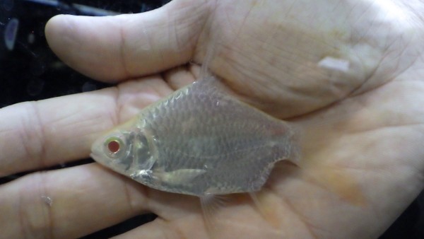 上記のシルバーバルブに混じって1匹だけ輸入された謎のラスボラ。これ系の仲間は詳しくないのでよく分かりませんが、ラスボラスマトラナというのに似てます。ただしスマトラナがタイに生息しているかは不明・・・。ラスボラ属の中では大型種のような気配。1匹しか来ていませんので気になる方は育ててみてください。