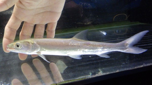 中東原産の超カッコいい大型のコイ、Luciobarbus brachycephalusのアルビノ。以前は高額な大型個体が輸入されたりもしましたが、今では不定期ではありますがたまに今回のようなサイズのブリード個体が輸入され流通していますね。また、情報が少なかった頃はコレイウスという別のコイの名前で流通していたことも・・・。そんなルシオバルブス、スレンダーな体型と精悍な顔つきが超かっこよくいて、しかもアルビノはその体色が神々しく、とても魅力的です!このルシオバルブスという属にはマンガルと呼ばれる L.esocinus など他にも魅力的な魚がいっぱいいますので、今後の輸入に期待したいですね!上段の画像です。