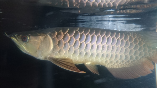 お客様からの下取り個体になります。もちろんスタイルバッファローの証明書も付属しております。証明書の裏にはアクアルビーさんの捺印とマイクロチップナンバーの記載があります。マイクロチップは確認済みで、個体に埋められたチップのナンバーと証明書に記載されたチップのナンバーは一致しておりますので、証明書の個体で間違いありません。ややヒゲがクロスしておりますが、これは時間が経てば自然に治ることがほとんどですのでそんなに気にならないと思います。ただしどれくらの期間で治るというのは言えませんので悪しからず・・・。それと、もともとアロワナ同士で混泳していた個体なのですが、その時に一部の鱗の縁が欠けてしまったようです。これも自然に治る場合が多いですが、気になる場合は麻酔をかけて抜いてしまえば確実に再生します。目垂れやアゴズレ、エラ捲れ等の欠点はありません。画像が悪いので個体の良さが伝わらず残念ですが、実物は画像よりも青いし、全然かっこいい良いアロワナですよ!ぜひ実物を見に来てください!!餌食いもすごく良い個体で、金魚でもワームでもバクバク食べますので、しっかり餌をあげて飼い込んであげればこれから体高も増してまさにスタイルバッファローな体型に仕上がると思います!本来は超高級な有名ブランドの過背金龍です!こんな値段で手に入るチャンスは今後ないかもしれませんよ!!