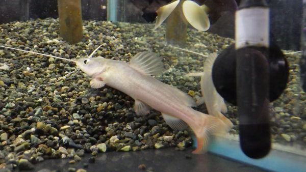激レア!!レッドテールミスタスのプラチナ個体が入荷!!ミスタスの仲間で1番カッコいいのは何かと聞かれたら迷わずホワイトテールミスタスって答えます(そこはレッドテールミスタスじゃないのか!?)!!そして2番がレッドテールミスタス!!でもレッドテールミスタスもホワイトテールミスタスも体型とかはそっくりです!どちらも体は真っ黒で尾ビレが赤いか白いかの違いだけみたいな感じ。白黒か赤黒かと言われれば自分は白黒が良いだけで、どっちも本当にかっこいいんです!そんなかっこいいミスタスのプラチナ個体ですからね、ナマズ好きの方なら成長した姿を想像しただけで白ごはん食べられますよね!?まぁ冗談はさておき、これワイルドの色彩変異個体なので超希少ですよ!!以前インドネシアのシッパーがこれの60cm位のを持っていたのですが、全身乳白色のホワイトボディに尾ビレだけ真っ赤、扁平な顔つきでそれはそれはかっこよかったです!ただサイズが大きいから仕方ないですが目玉が飛び出る位に高価だったので輸入を諦めました・・・。そんな希少で高級なナマズですが、今回はサイズ小さいだけあってかなりお買い得!入荷は1匹のみ!今回輸入されたのもこの1匹のみ!!ビッグキャットのマニアの方、プラチナやアルビノの特殊個体のマニアの方、お見逃しなく!!上段の画像です。2つの画像は同一個体です。4月3日追記:お客様から「間違いなくワイルドですか?」というお問い合わせをいただき輸入元にあらためて確認をしたところ、現地からは「小さな幼魚をたくさん採集した中で色の違う個体を選別し、それをしばらく育てて色彩変異個体であることを確認した個体だ。」と言われたそうです。ただし輸入元でも現地の業者が言っていることが100%信用できるかは保証できかねるとも言われました。ご参考までに・・・。