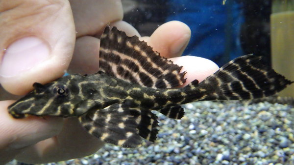 前回、前々回と即完売だったドラゴンボルダードが再入荷です!これで最後!もう問屋さんにもこの値段で販売できるこのサイズは在庫いません!興味の無い人には普通のセルフィンプレコに見えてしまうかもしれませんが、普通ならこのサイズでも¥25000~¥30000はする激レアな高級プレコなんですよ!大きくなるとごつくなってすごく迫力のあるかっこいいプレコになります!もちろんコケもよく食べてくれますので、超贅沢なコケ取りプレコとしてもオススメ!前回、前々回と買いそびれてしまった方はお見逃しなく!!ドラゴンボルダードがこんな値段で買えるチャンスはもう無いと思いますよ!!上段の画像です。2つの画像は別の個体です。画像の個体以外にも在庫ございます。