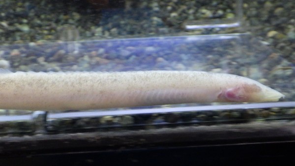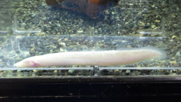 洞窟棲の目の無いスパイニールです。超久しぶりの入荷!!たぶん2~3年ぶりです!!実は去年まで長い間売れ残ってた個体がいて、餌の時間になるとニョロニョロ出てくるやつですごいかわいかったんですよね。やっと売れたなぁなんて思っていたんですが、いなくなるとすごく淋しい・・・。そんなタイミングでの嬉しい入荷!入荷は1匹のみです!滅多に輸入されない魚ですので、スパイニールマニアの方はお見逃しなく!!中段右、左下の画像です。