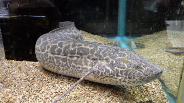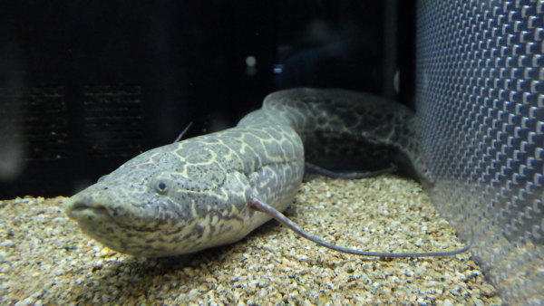 完品のアフリカンパイクの大きいサイズが入荷しました!太くてがっしりした体型がカッコいいし、背ビレがオレンジに発色していてキレイだし、すごく良い個体です!。左下の画像です。