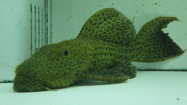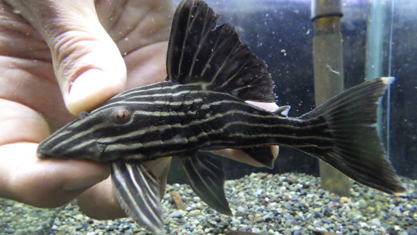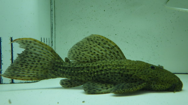 このサイズで輸入された個体です!全身トゲトゲですごいカッコいいですが、素手で触ったらただでは済まないでしょうね・・・。トリムプレコの中でも特にトゲが発達する種類ですので、これから飼い込んでさらにトゲが伸びてきたらすごいことになると思います!オレンジトリムは大きいサイズでの輸入が少なく、この位のサイズですと同サイズのスーパースカーレットよりも高かったりしますので、今回入荷した個体はかなりお買い得ですよ!上段の画像です。2つの画像は同一個体です。