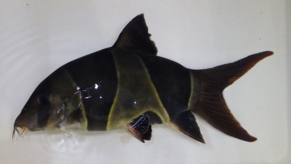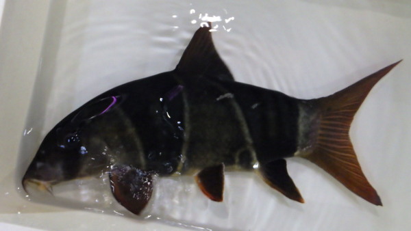 でかいクラウンローチ、実はけっこう前に入荷してずっとお店で飼っていました。このサイズ今ではかなり貴重です!店頭でしばらく飼い込んでいた個体なので状態も抜群で餌もバクバク食べてます!高いと思われるかもしれませんが、インドネシアではクラウンローチは輸出できるサイズに規制があって大きいのは輸出禁止なので本当に入ってこないんですよね・・・。なのでこの値段も致し方なしかと・・・。価値の分かる方ぜひ!!他の個体もそうですが、黒水槽で飼い込んでいましたので体色がかなり黒ずんでいますが、クリアの水槽や白水槽で飼ってあげれば明るい体色に戻りますのでご安心下さい。上段の画像です。2つの画像は同一個体です。