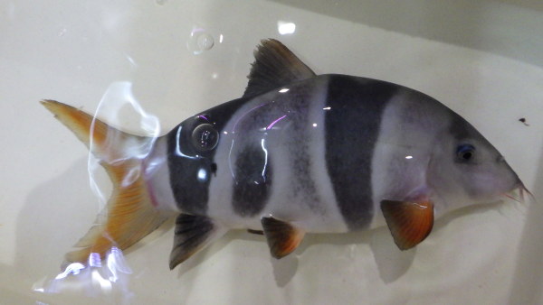 鱗とびまくりでヒレもバサバサになっていますので、キレイに治ったらあらためて紹介させていただきます。1~2週間もあればキレイに治る程度ですのでもうしばらくお待ち下さい。現状でもいいという方には販売もしますので気になる方はお問い合わせ下さい。
