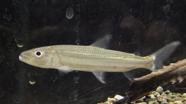 ゴリアテに混じって輸入されたというスレンダーな体型のタイガーフィッシュです。ナイジェリア産のスレンダータイガーフィッシュよりはやや体高が高めな感じ。顔付きはスレンダーやビッタータスよりは吻が少し長く尖った顔でブレビスに似ていますが、やはりブレビスよりは体高が低いような気がします・・・。まぁいずれにしてもかっこいい魚なのは間違いないですね!?右下の画像です。
