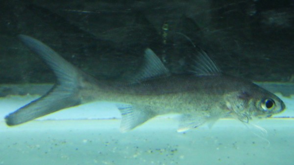インドネシア産の激レアなスレッドフィンパラダイスが入荷!鼻先が尖っていてサメみたいな顔付きなのでシャークマウススレッドフィンパラダイスです。普段よく見かけるスレッドフィンパラダイスはタイからくるPolynemusという属の種類ですが、今回入荷したのはタイ産のとは属レベルで違うPolydactylus macrophthalmusと思われる種類。この種はインドネシアのスマトラ島、カリマンタン島それぞれの限られた河川にのみ生息し、その特徴はこの尖った顔付きと、胸ビレの付け根から伸びる遊離軟条が7対であること、さらにサイズが大型になるということです!この見た目で50cm以上になるというんだから育ててみたくなりますよね!?あと、こいつ魚食性が強くて小魚バクバク食べちゃいます!!デカくなる種類は食性も違いますね!!自然下では純淡水域に侵入することもあるようですが、飼育下では純淡水で長期飼育が可能かは分かりません。お店では5分の1海水位の塩分濃度でストックしていますので純淡水で飼育する場合は自己責任でお願いしますね。汽水魚マニア、スレッドフィンパラダイス好きの方は必見!!次回入荷は未定です!スレッドフィンパラダイスの大型種を手に入れる機会は滅多にありませんよ!