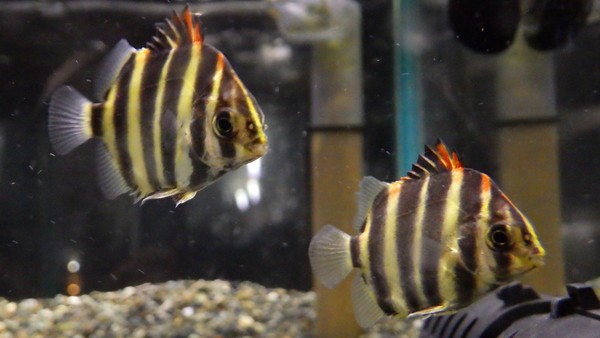 激レアなアフリカンスキャット入荷!当店では初入荷です!サイズ小さいですが縞模様もキレイですごくかわいいです!純淡水で問題無く飼育できるみたいですが、入荷時に袋の中の水に少し塩入ってましたので、当店でも今は少しだけ(海水の10分の1程度の塩)塩入れてます。様子見て水換えしながらこれから純淡水に慣らしていきますね。サイズ小さいですが着状態は良好ですし、小さい分値段はお買い得です!入荷は2匹のみですので気になる方はお早めに!!左上の画像です。