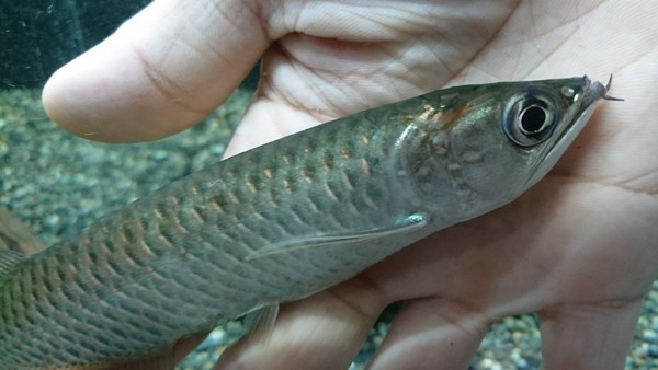 超久しぶりに入荷しました!メコンサーモンとかバーミーズトラウトとも呼ばれるメコン河のまるでサケのような雰囲気を持ったコイの仲間です。6~7年前?もっと前??は結構コンスタントに輸入されていて入荷する機会も多かったし、値段もそんなに高くはなかったんですが、ここ数年はほとんど見かけなくなっていて、個人的にはもう幻の魚になってしまったのかと思うほどでした。でも最近になって少数が輸入されたようですが値段が何万円もしてたからびっくりしました。そんなライアマスが現実的なお手頃プライスで入荷しました!フィッシュイーターなコイですが人工飼料にも普通に餌付きます。体側にはバリリウスのような模様が並びすごくキレイだし、サケのような厳つい顔が超かっこいいです!最大で35~40cmになる魚なので、デカくなったらかっこよすぎてヤバいですよ!!左下の画像です。